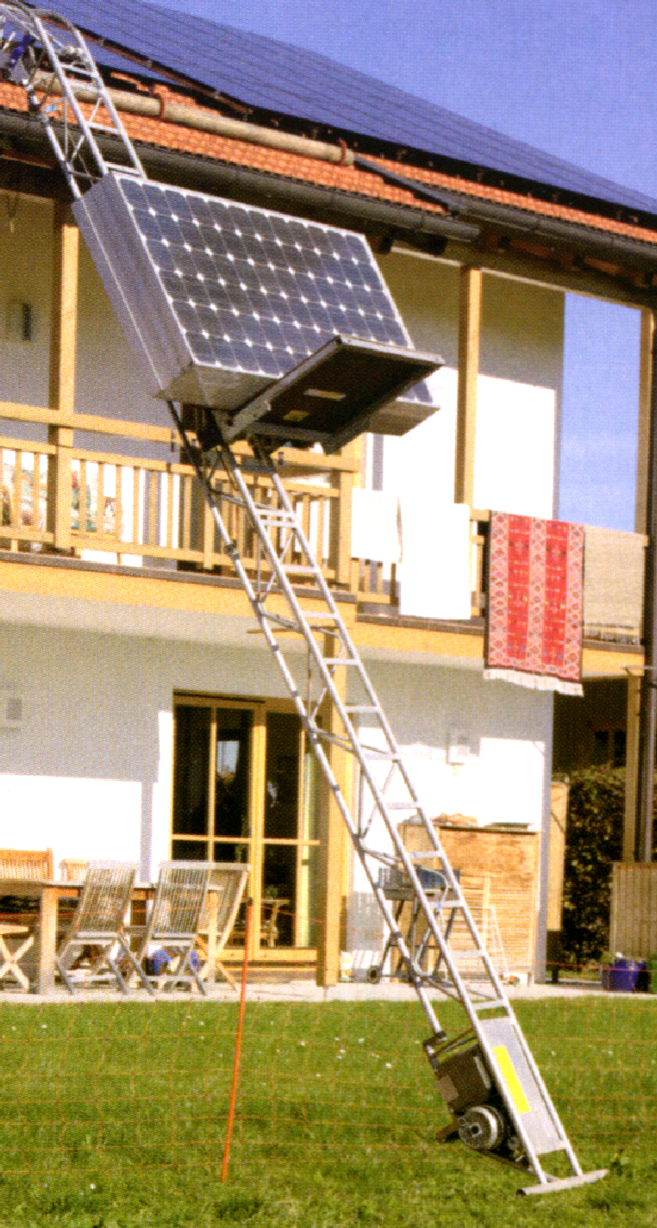 Transporte auf Höhen über ca. 9 m sind mit diesem Materialaufzug in Schrägversion oder sogar senkrecht möglich. Die elektr. Seilwinde ist im Grundelement eingebaut und wird mit 230 V angetrieben. Die Schienenelemente mit 1 bzw. 2 m Länge sind leicht steckbar. Tragkraft bis 150 kg.