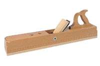 Rauhbank mit Weißbuchensohle 600 mm lang. Doppelhobeleisen mit  60 mm Eisenbreite. Hobelkörper aus ausgesuchtem gedämpften Rotbucheholz 80 mm breit. Schnittwinkel 45°. Hobelsohle aus Weißbuchenholz.