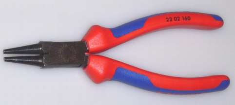 Rundzange mit kurzen kräftigen Backen, zum Biegen von runden Drahtteilen oder Ventilschenkelfedern im Orgelbau gut geeignet.