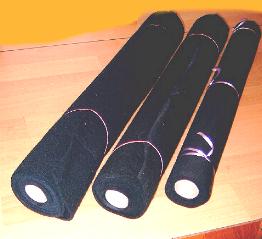 schwarzes hochwertiges Woll-Filztuch in Zuschnitte 1800 x 600 mm (1,08 m²)  aufgerollt.  0,20 spez. Gewicht, mittelweicher Standardfilz.