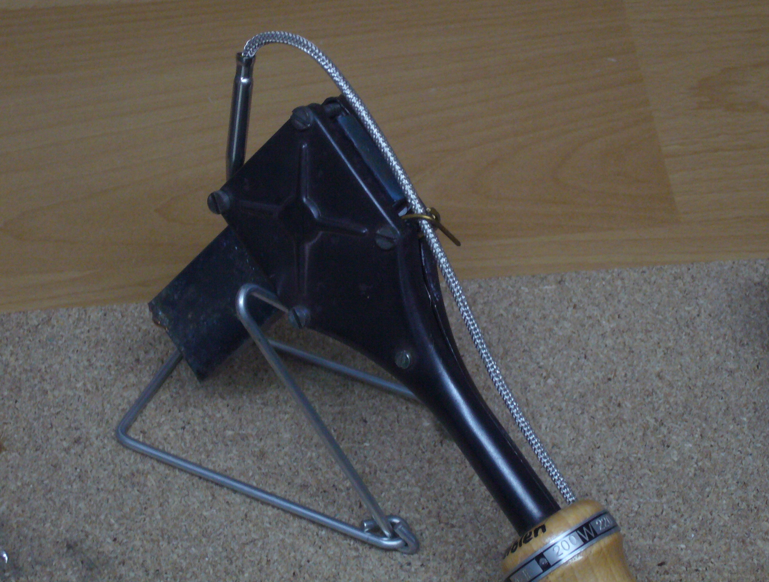 Im Lötstück oder seitlich an der Brennplatte kann dieser mittels einer 3-mm-Bohrung angesteckt werden. Das sehr lange mit Metallgewebe umwickelte Fühlerkabel kann entweder separat zum Regelgerät oder bei Lötkolben oder Brennstempeln, die dauernd mit dem Fühler ausgestattet sein sollen, im Griffstück und am Elektrokabel parallel geführt werden.